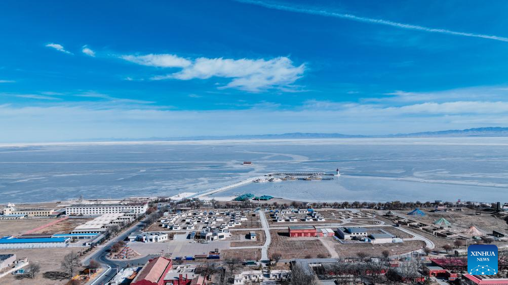 Qinghai Lake, China's largest inland saltwater lake, now covered in ice, presents a breathtaking scenery.