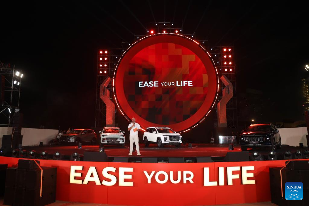 Photo taken on July 24, 2025 shows a launch of SOUEAST's new models in El Alamein, Egypt. SOUEAST, a Chinese auto brand, unveiled four new models in Egypt on Thursday, marking a significant expansion in the African market. (Xinhua/Sui Xiankai)