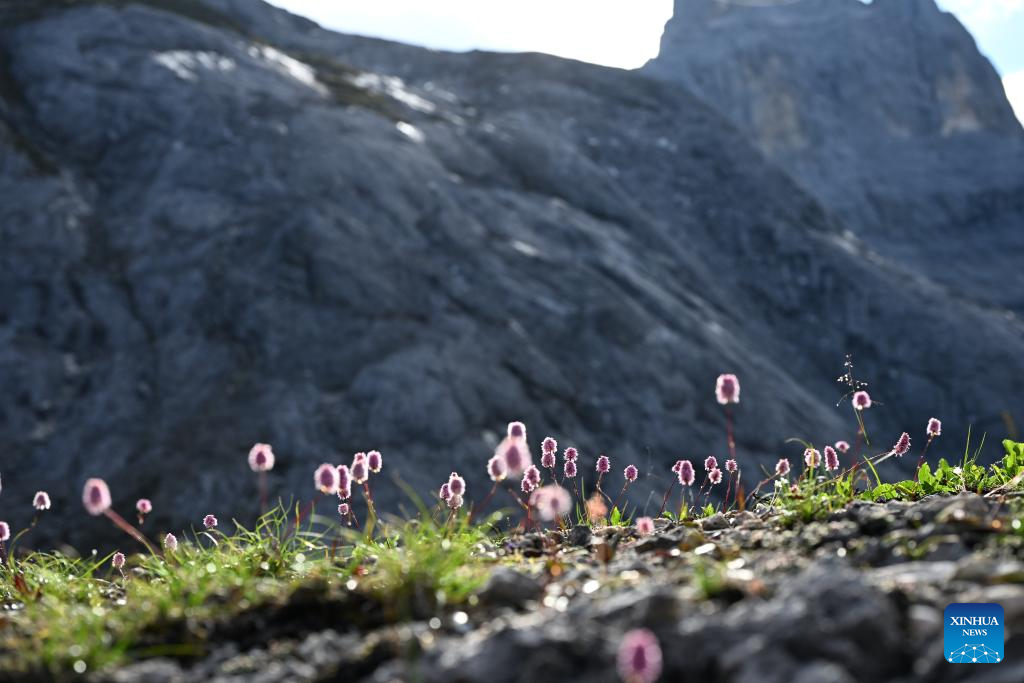 This photo taken on July 23, 2025 shows a Polygonum viviparum L. on Yulong Snow Mountain in Lijiang, southwest China's Yunnan Province. Known as "Plant Kingdom" in China, Yunnan nurtures a wealth of rare alpine plants thanks to its unique geographical position, diverse landforms and complex climatic conditions. (Photo by Zhao Qingzu/Xinhua)