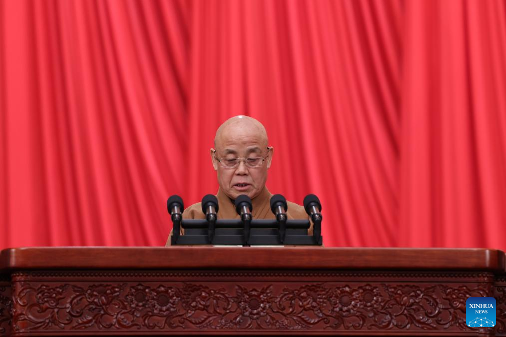 Yanjue, a member of the 14th National Committee of the Chinese People's Political Consultative Conference (CPPCC), speaks at the third plenary meeting of the second session of the 14th CPPCC National Committee at the Great Hall of the People in Beijing, capital of China, March 9, 2024. (Xinhua/Jin Liwang)