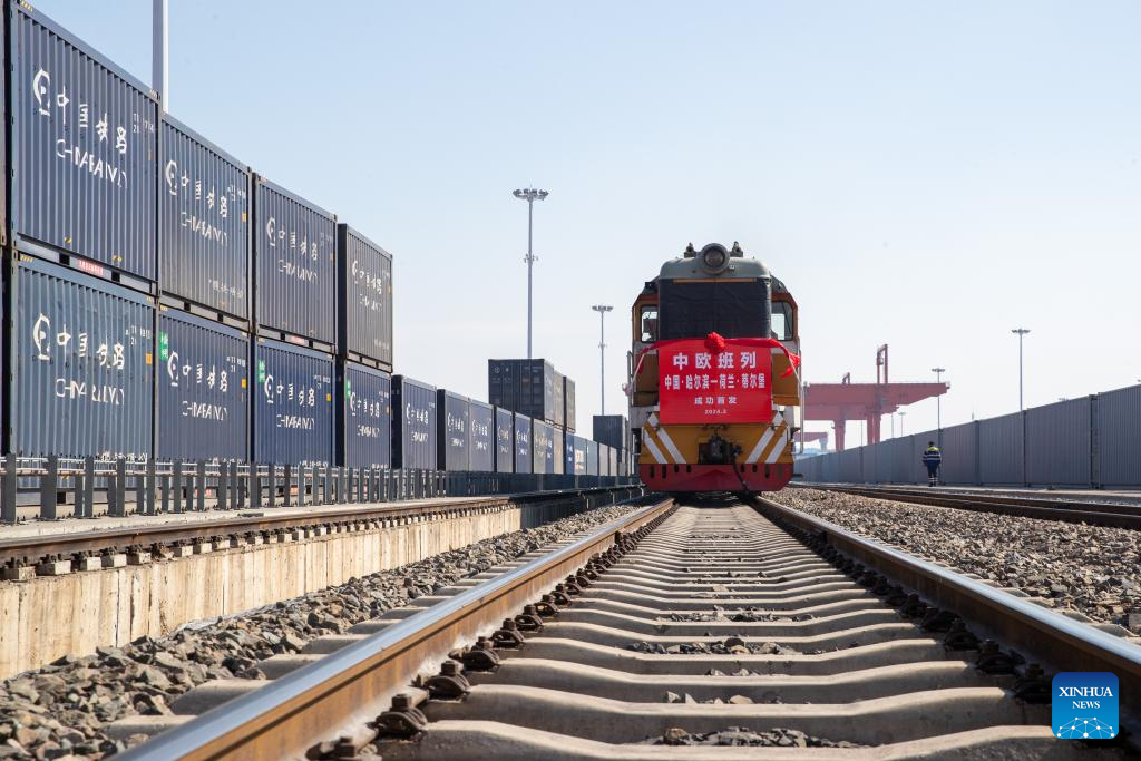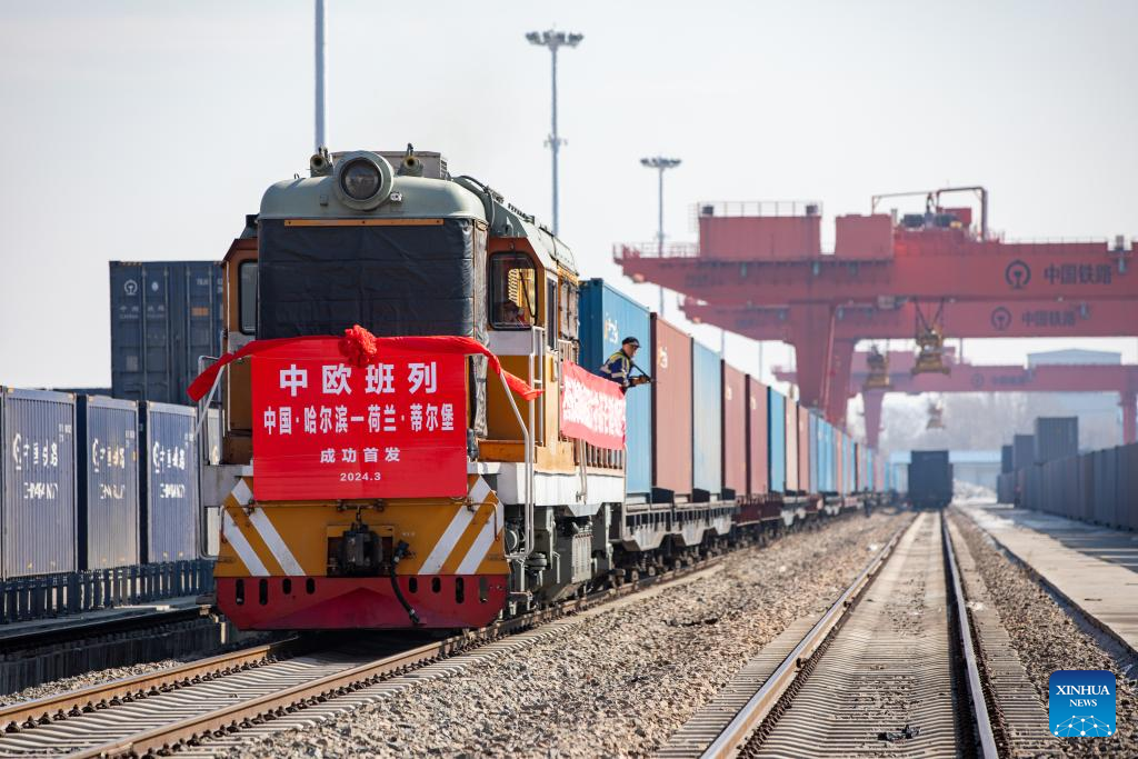 HARBIN, March 14 (Xinhua) -- A new international freight train route linking Harbin, the capital of northeast China's Heilongjiang Province, with Tilburg in the Netherlands, has been launched, becoming the first China-Europe freight train service connecting the border province with a city in the Netherlands.