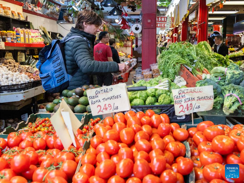 Customers shop at a market in Toronto, Canada, on April 15, 2025. Canada's Consumer Price Index (CPI) rose 2.3 percent year over year in March, following an increase of 2.6 percent in February, Statistic Canada said Tuesday. (Photo by Zou Zheng/Xinhua)