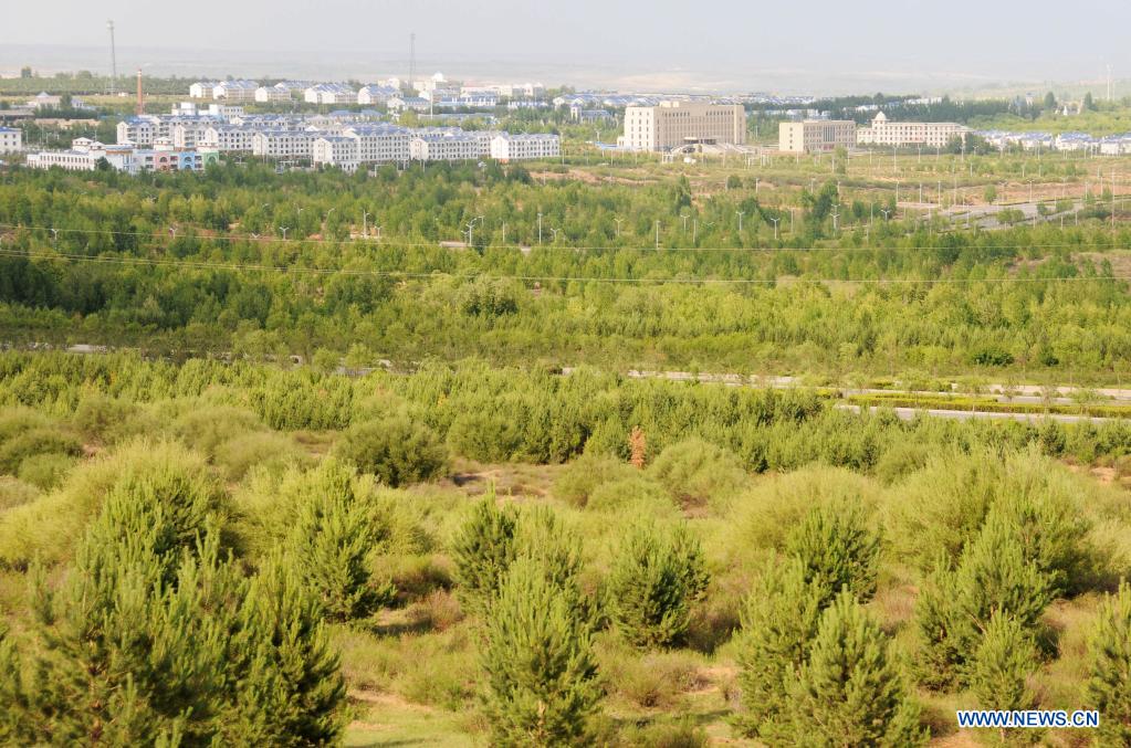 Photo taken on May 30, 2021 shows the ecological zone of Maowusu Desert in Ordos of north China's Inner Mongolia Autonomous Region. (Xinhua/Li Yunping)