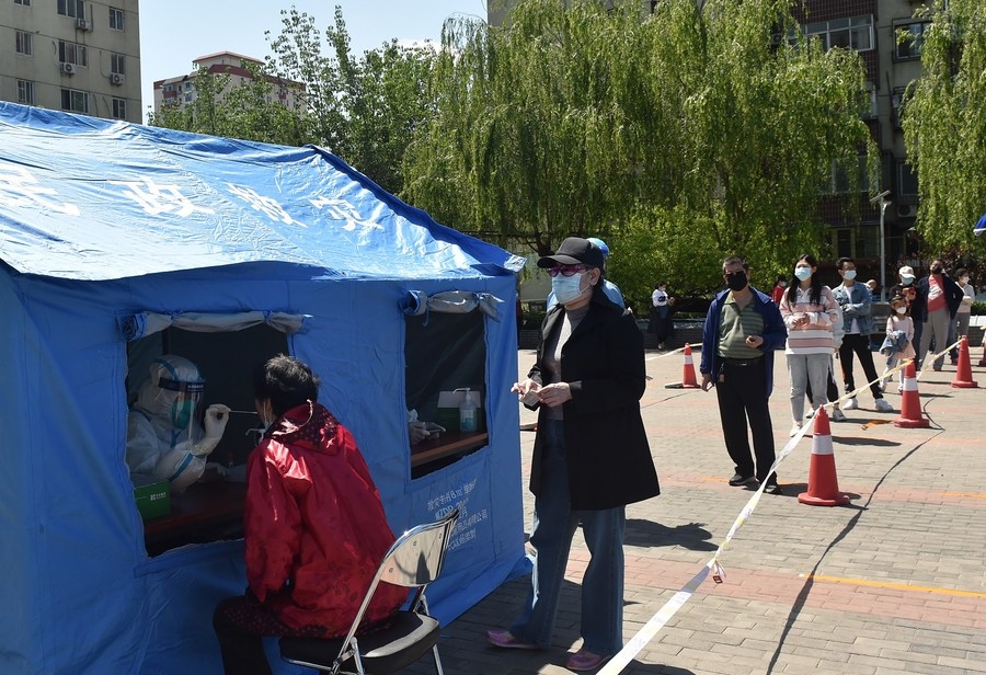 Residents queue up to take nucleic acid testing in Fengtai District of Beijing, capital of China, April 30, 2022. (Xinhua/Zhao Tingting)