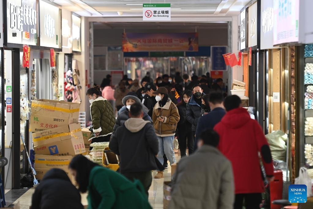 People shop at the Yiwu International Trade Market in Yiwu City, east China's Zhejiang Province, Feb. 2, 2023. About 75,000 merchants at the Yiwu International Trade Market on Thursday welcomed their first business day in the Year of the Rabbit.(Xinhua/Huang Zongzhi)