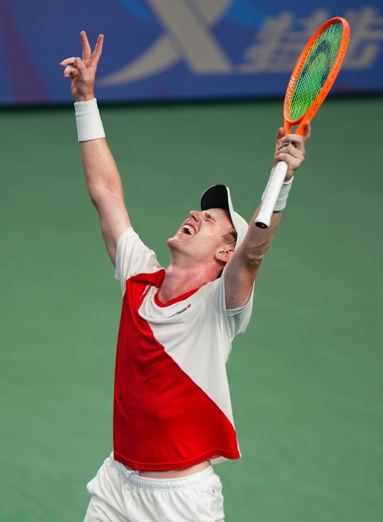 H. Von Der Schulenburg celebrates winning the men's singles final. (Xinhua/Jiang Hongjing)