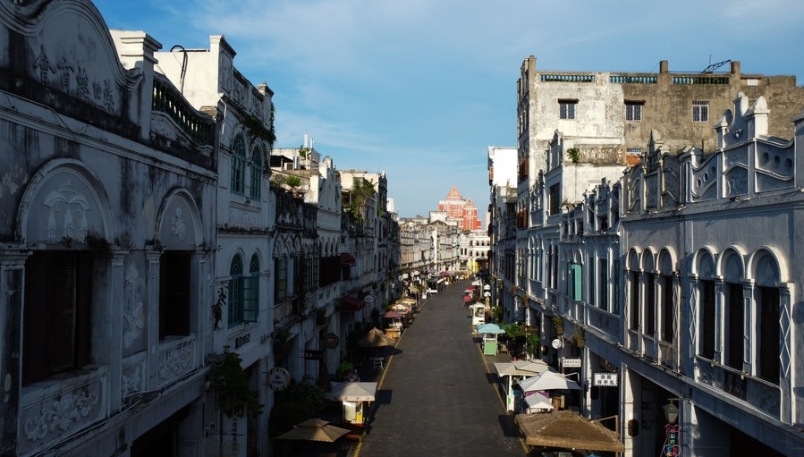 In Haikou, the capital city of Hainan, a tourist surnamed Wang from central China's Henan Province was admiring the historical Qilou buildings in the century-old streets, with a camera in hand.
