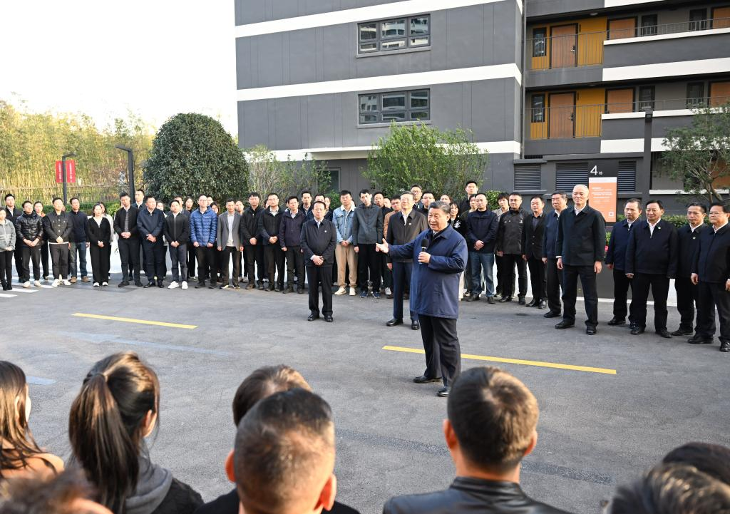 On Wednesday afternoon, Xi visited a residential community in Minhang District that is dedicated to providing affordable rental housing for new urban dwellers, young people and frontline workers.