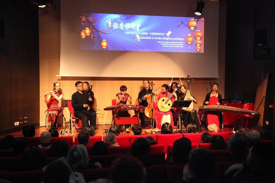 Chinese and French musicians participate in a concert to celebrate the Chinese New Year at the China Cultural Center in Paris, France, Jan. 25, 2023. (Xinhua/Tang Ji)