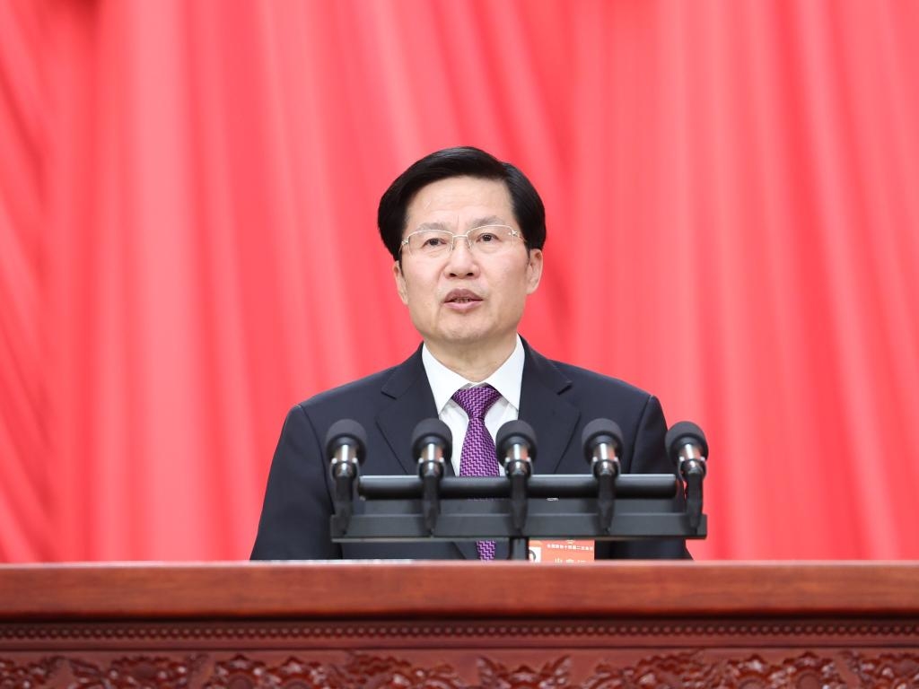 Wang Huning, chairman of the CPPCC National Committee, delivered a work report of the Standing Committee of the CPPCC National Committee to the session.