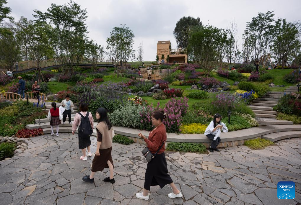 Visitors tour the Chengdu garden of the International Horticultural Exhibition 2024 Chengdu in Chengdu, southwest China's Sichuan Province, May 1, 2024. Visitors across China visited the main venue of the International Horticultural Exhibition 2024 Chengdu during the May Day holiday. (Xinhua/Jiang Hongjing)