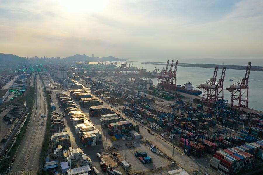 This aerial photo taken on May 9, 2023 shows a port in Lianyungang, east China's Jiangsu Province. The China-Kazakhstan (Lianyungang) logistics cooperation base, launched in 2014, is the first entity project under the BRI. (Xinhua/Ji Chunpeng)