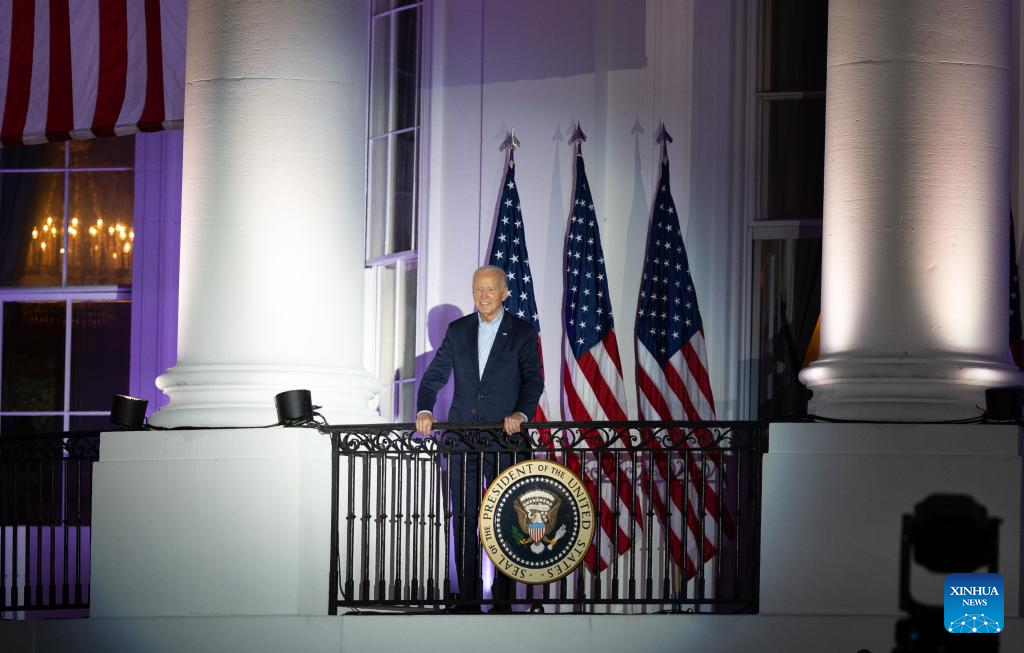 U.S. President Joe Biden is pictured at the White House in Washington, D.C., the United States, on July 4, 2024. U.S. President Joe Biden announced on Sunday his intention to drop out of the presidential race. (Xinhua/Hu Yousong)