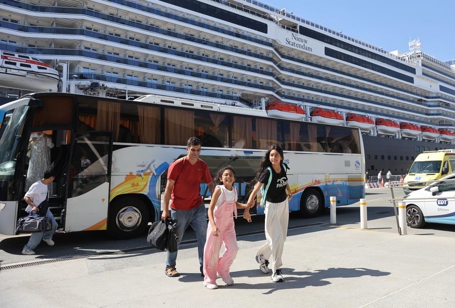 Chinese citizens evacuated from Lebanon are seen at the Port of Limassol, Cyprus, on Oct. 1, 2024. (Xinhua/Li Jing)