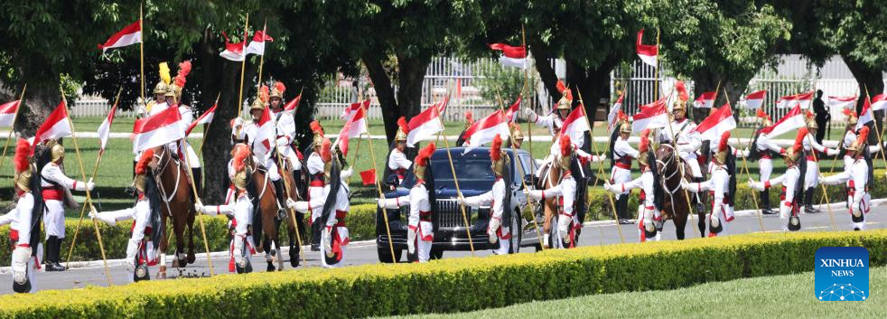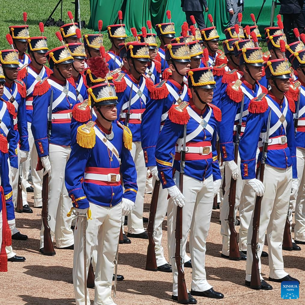 Brazilian President Luiz Inacio Lula da Silva and his wife Rosangela da Silva warmly welcome Chinese President Xi Jinping and hold a grand welcome ceremony for Xi, prior to the talks between Xi and Lula, in Brasilia, Brazil, Nov. 20, 2024. Xi on Wednesday held talks with Lula in Brasilia. (Xinhua/Li Xueren)