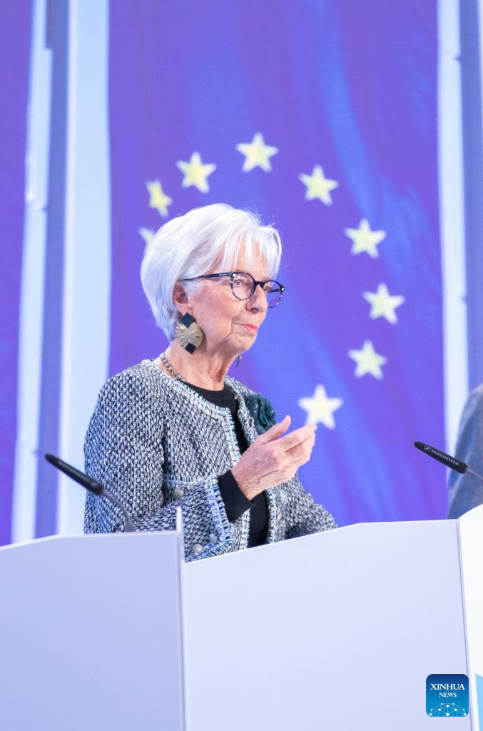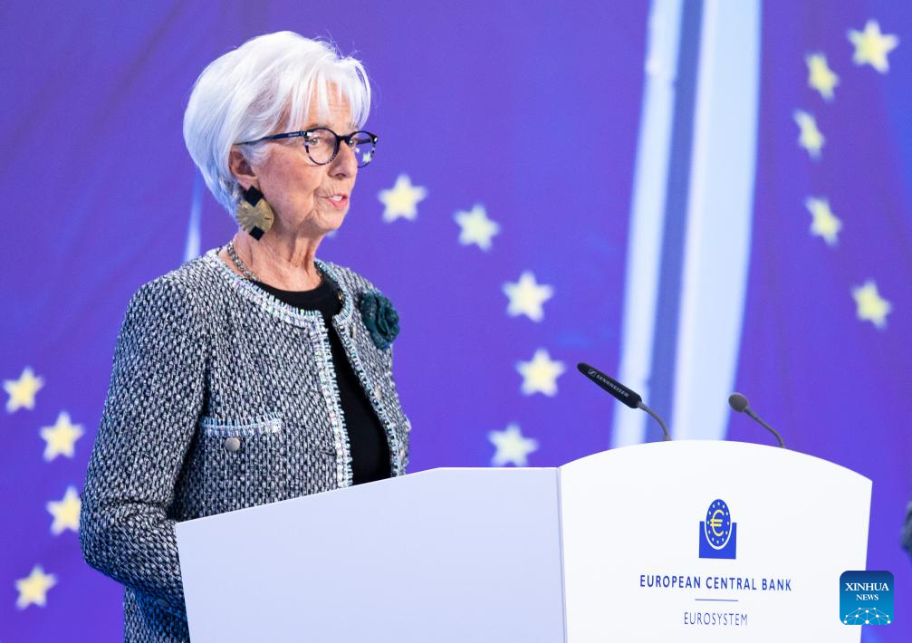 European Central Bank (ECB) President Christine Lagarde speaks during a press conference at the ECB headquarters in Frankfurt, Germany, Dec. 12, 2024. The ECB decided on Thursday to cut its key interest rates by 25 basis points at its rate-setting meeting. (Xinhua/Zhang Fan)