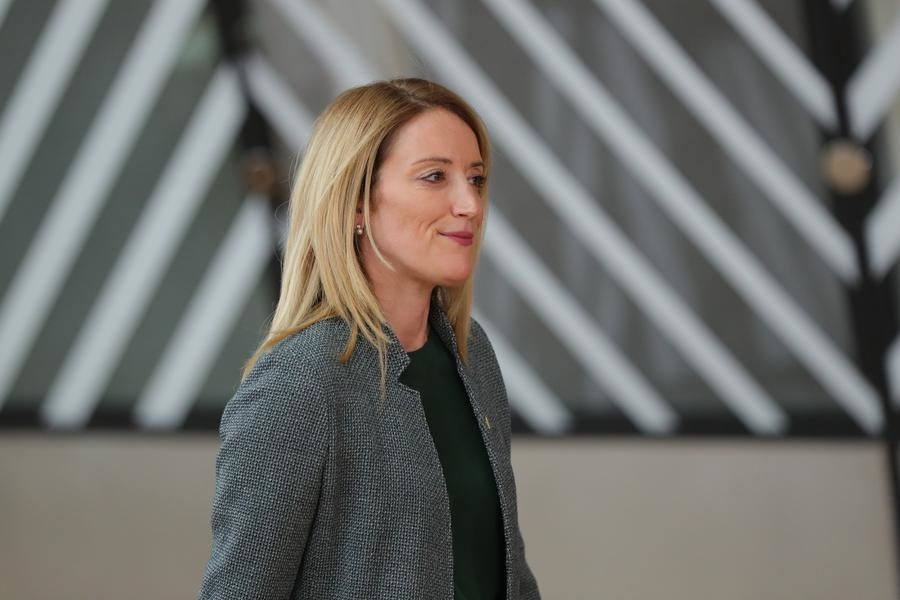 President of the European Parliament Roberta Metsola attends a special meeting of the European Council at the European Union headquarters in Brussels, Belgium, May 30, 2022. (Xinhua/Zheng Huansong)