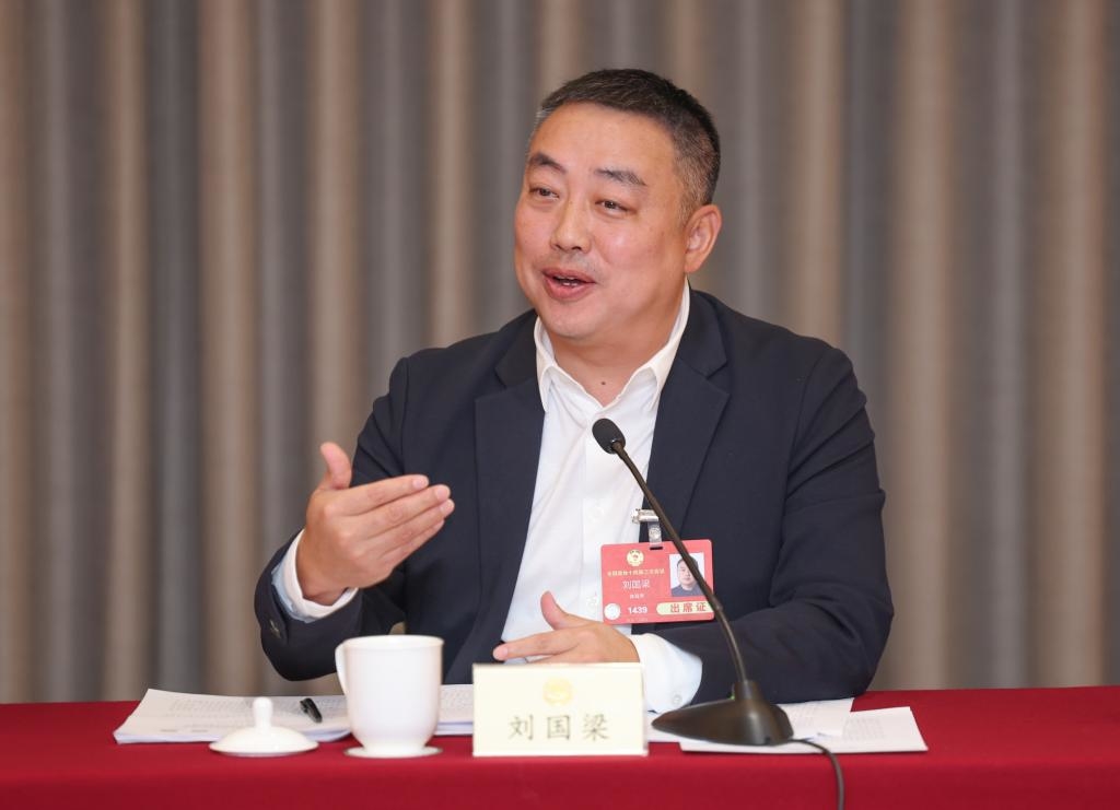 National political advisor Liu Guoliang speaks at a meeting of national political advisors from sports sector at the third session of the 14th National Committee of the Chinese People's Political Consultative Conference (CPPCC) in Beijing, capital of China, March 5, 2025. (Xinhua/Yin Gang)