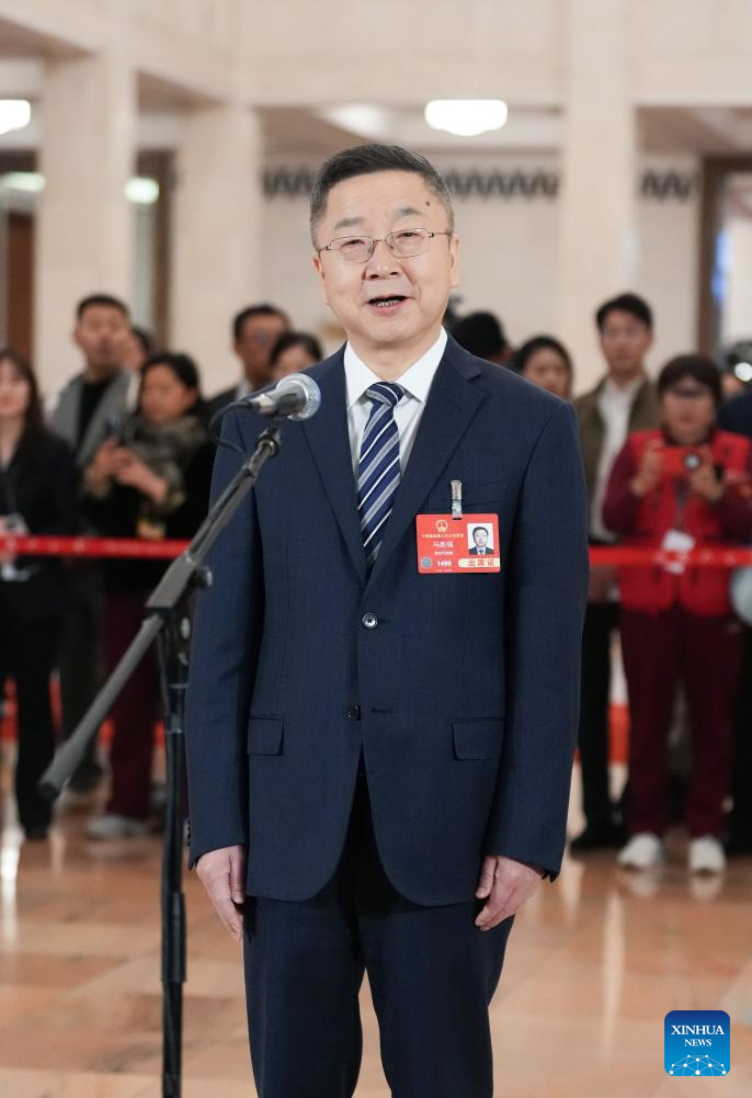 Ma Xinqiang, a deputy to the 14th National People's Congress (NPC), attends a group interview ahead of the second plenary meeting of the third session of the 14th NPC at the Great Hall of the People in Beijing, capital of China, March 8, 2025. (Xinhua/Zheng Huansong)