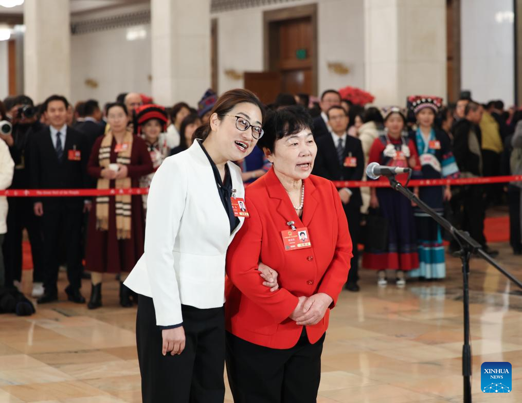 Deputies to the 14th National People's Congress (NPC) attend a group interview ahead of the second plenary meeting of the third session of the 14th NPC at the Great Hall of the People in Beijing, capital of China, March 8, 2025. (Xinhua/Xu Bingjie)