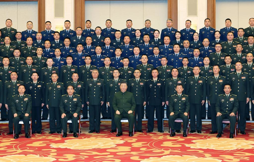 Chinese President Xi Jinping, also general secretary of the Communist Party of China Central Committee and chairman of the Central Military Commission, meets with senior officers and representatives of the soldiers and civilian staff of the Chinese People's Liberation Army troops stationed in Kunming, southwest China's Yunnan Province, March 20, 2025. Xi made an inspection tour in Yunnan Province on Wednesday and Thursday. (Xinhua/Li Gang)