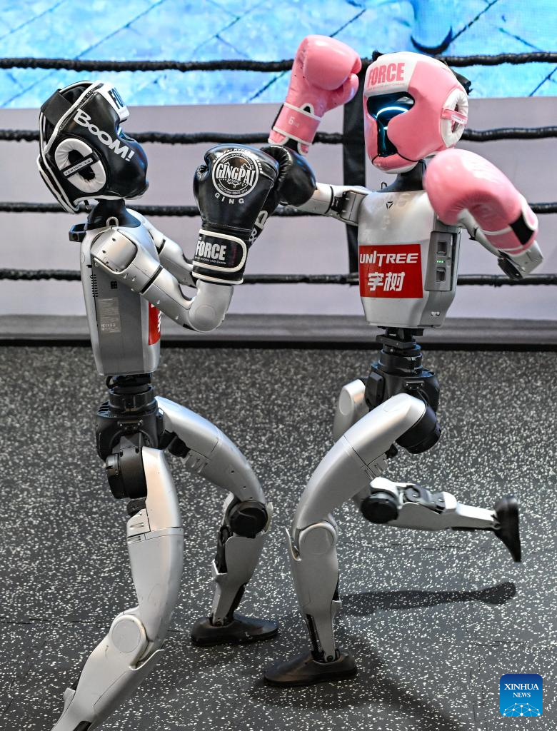 A robot boxing game is pictured at the booth of Unitree at the venue of the World Smart Industry Expo 2025 in southwest China's Chongqing, Sept. 4, 2025. The expo is scheduled for Sept. 5 to 8 in Chongqing to present cutting-edge achievements of the smart industry through professional exhibitions. (Xinhua/Wang Quanchao)