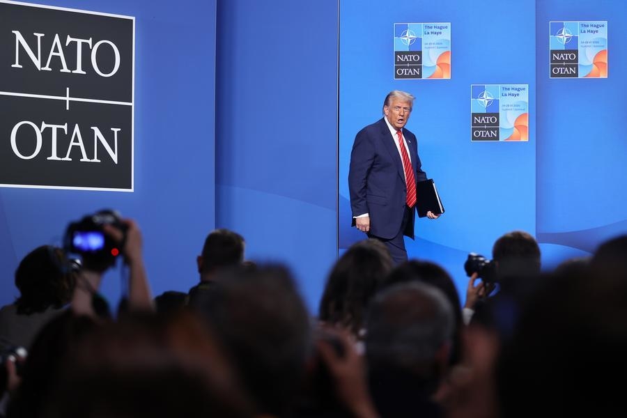 U.S. President Donald Trump attends a press conference following the NATO summit in The Hague, the Netherlands, on June 25, 2025. (Xinhua/Zhao Dingzhe)
