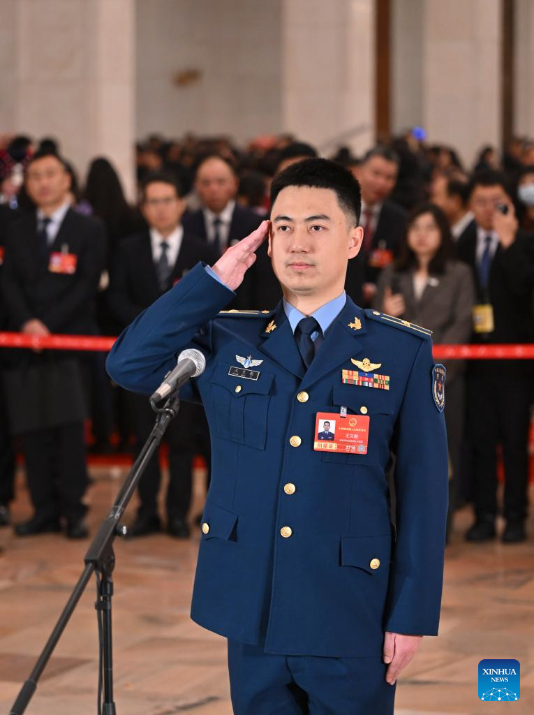 Wang Wenyi, a deputy to the 14th National People's Congress (NPC), attends a group interview ahead of the opening meeting of the fourth session of the 14th NPC at the Great Hall of the People in Beijing, capital of China, March 5, 2026. (Xinhua/Li Xin)