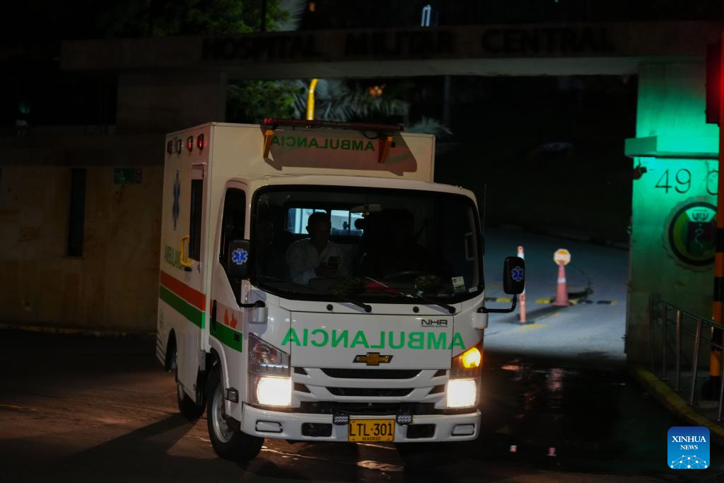 An ambulance leaves a military hospital after transporting the injured from a Colombian military aircraft crash, in Bogota, Colombia, on March 23, 2026. The death toll from a Colombian military aircraft crash in southern Colombia's Putumayo region has risen to 66, with 57 others injured, local media reported on Monday, citing military sources. (Photo by Andres Moreno/Xinhua)