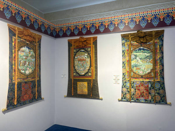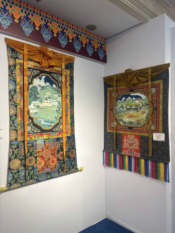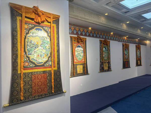 Beautiful thangka paintings are on show at the Cultural Palace of Nationalities in Beijing celebrating cultural depth and social developments. [Photo by Lin Qi/chinadaily.com.cn]