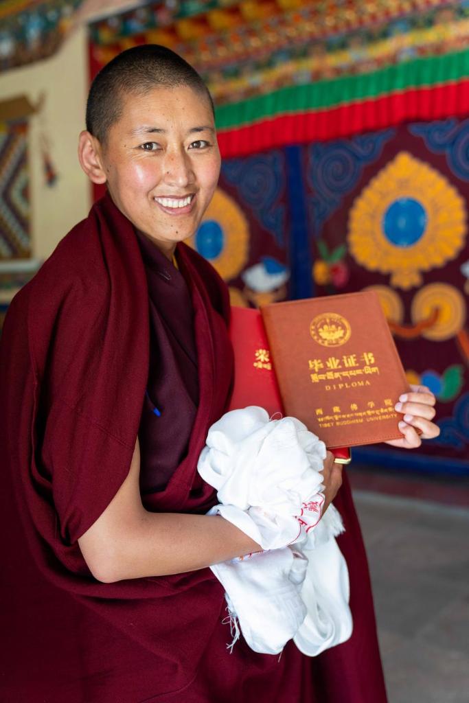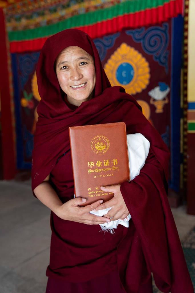 "I feel particularly lucky to have completed my studies and earned the 'Chi Ram Pa' title thanks to favorable policies, as well as my teachers and classmates," said Yeshe Drolma, one of the nuns.
