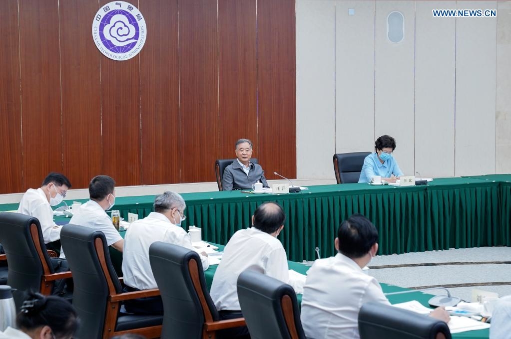 Wang Yang, a member of the Standing Committee of the Political Bureau of the Communist Party of China Central Committee and chairman of the National Committee of the Chinese People's Political Consultative Conference, presides over a session on strengthening ecological and environmental protection on the Qinghai-Tibet Plateau and its adaptation to climate change in Beijing, capital of China, Aug. 24, 2021. (Xinhua/Zhang Ling)
