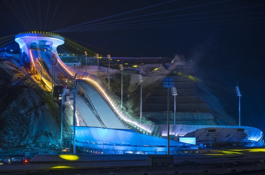 The National Ski Jumping Center in Zhangjiakou City, locally known as the "Snow Ruyi", will host the ski jumping and Nordic combined events during the Beijing Winter Games. [Photo/Xinhua]