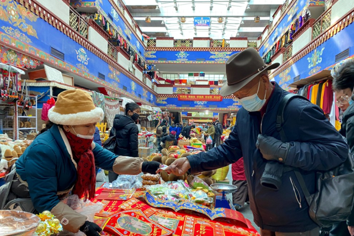 Festive atmosphere has been seen everywhere recently in southwest China’s Tibet autonomous region, as the 2022 Tibetan New Year approached. The Tibetan people, dressed in brand-new clothes, have been caught up in holiday purchases and visiting their friends and relatives to send their New Year wishes.