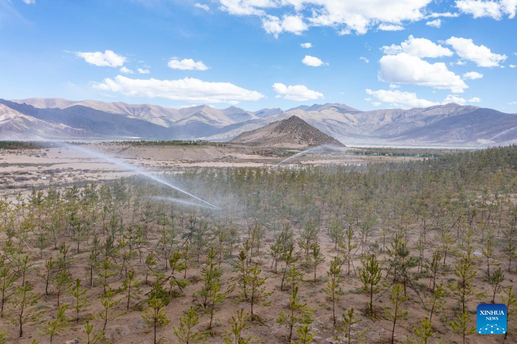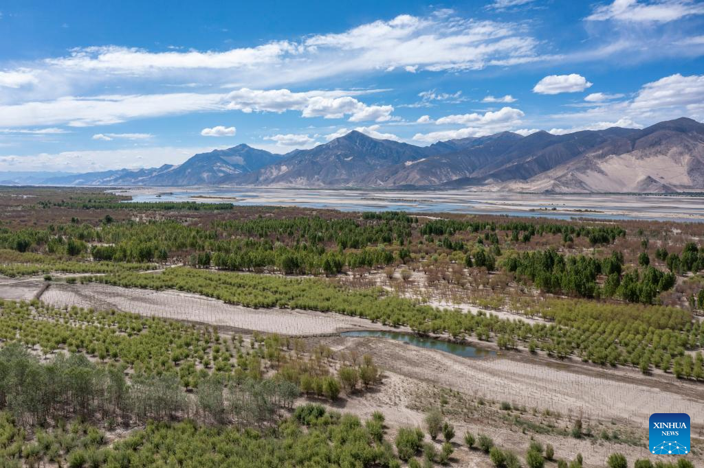 With unwavering endeavors of sand control and ecology restoration, more than 45 million trees have been planted over the past four decades in Shannan, an area the Yarlung Zangbo River runs through.