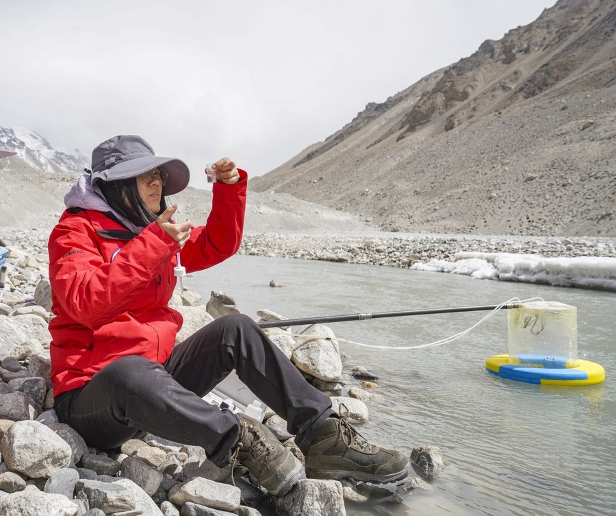 The shrinking glaciers are a reliable indicator of subtle climate changes in the region. As part of the Qomolangma scientific research expedition, the sampling task I was assigned to cover aims to analyze the glacier lake's water quality and collect data for further study on climate warming.