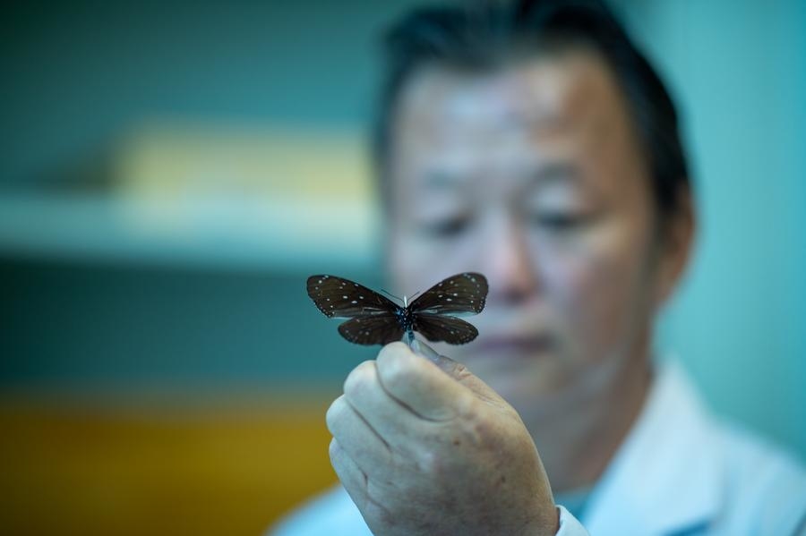 LHASA, May 9 (Xinhua) -- In the laboratory of Tibetan entomologist Dawa, a delicate grey butterfly, adorned with white stripes and intricate golden circles, has found its final resting place.