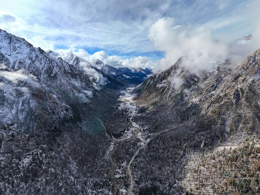 A drone photo taken on Nov. 4, 2024 shows the scenery of Duopugou scenic spot in Dege County of Garze Tibetan Autonomous Prefecture, southwest China's Sichuan Province. (Xinhua/Wang Xi)