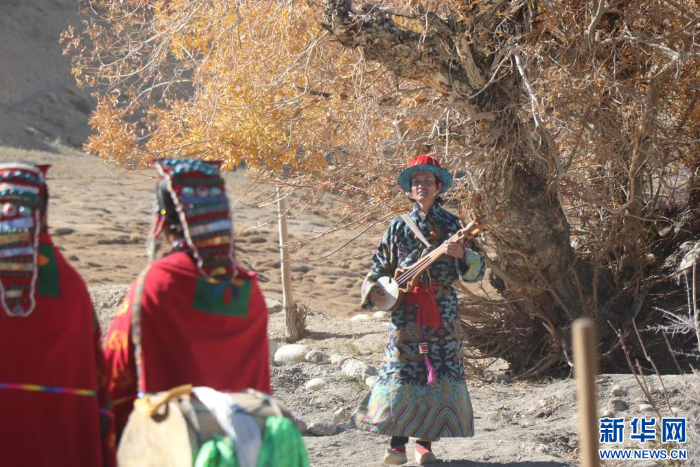 The musician Gema Tashi Chojor performs in traditional costumes. (Photo/Xinhua)