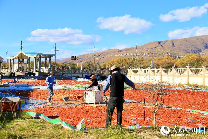 Farmers dry malus toringoide fruits in Luhuo county, Ganzi Tibetan Autonomous Prefecture, southwest China's Sichuan Province. (People's Daily Online/Zhu Hong)