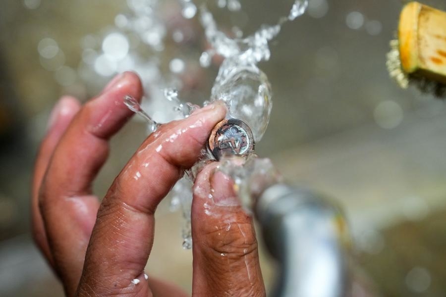Dawa Dakpa washes a product for further processing in Dege County of Garze Tibetan Autonomous Prefecture, southwest China's Sichuan Province, Nov. 3, 2024.