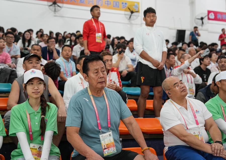 SANYA, China, Nov. 28 (Xinhua) -- Amid the electrifying cheers in the Yajia finals at China's 12th National Traditional Games of Ethnic Minorities, an elderly man sat quietly outside the gymnasium.
