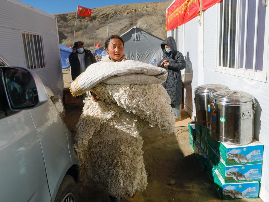 LHASA, Jan. 12 (Xinhua) -- On Sunday morning, at a newly-built resettlement site in the earthquake-struck county of Dinggye, southwest China's Xizang Autonomous Region, children were doing their homework inside warm makeshift houses, undisturbed by occasional jolts of aftershocks and the chilling winds howling through the Himalayas.
