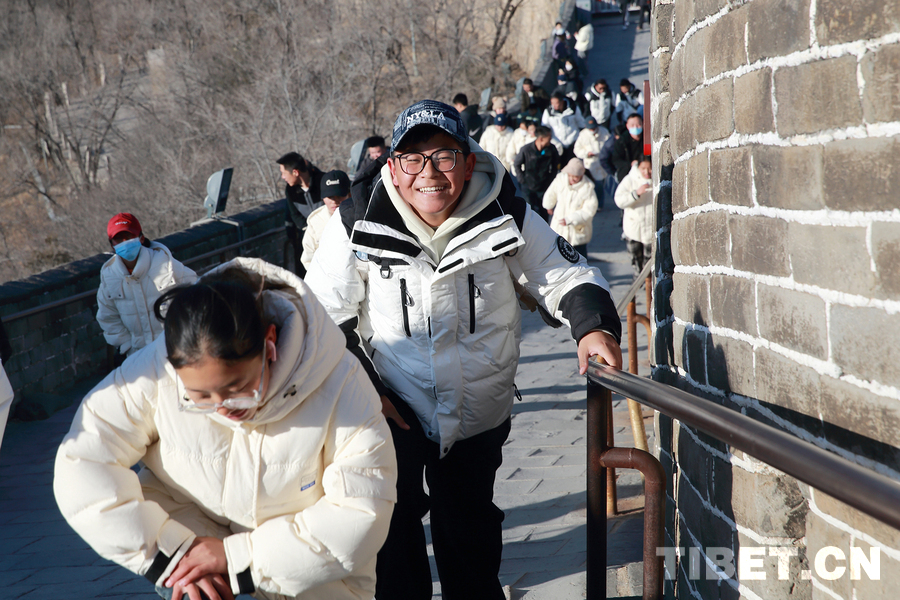 Recently, teachers and students from the border counties in the Ngari region, China’s Xizang Autonomous Region, who went to Beijing for a study tour, drove to the long-awaited Badaling Great Wall. “One who fails to reach the Great Wall is not a hero!” The children were energetic and strived to climb toward the highest beacon tower.