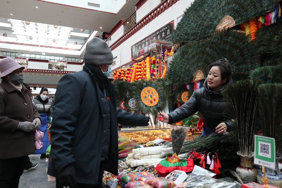 As the Tibetan Losar New Year approaches, the Barkhor Mall in Lhasa, the capital of the Xizang autonomous region, is teeming with shoppers eager to purchase festive goods. From Jan 28 to Feb 27, the mall hosts its annual New Year's goods festival, featuring 213 free temporary stalls spread across three floors.