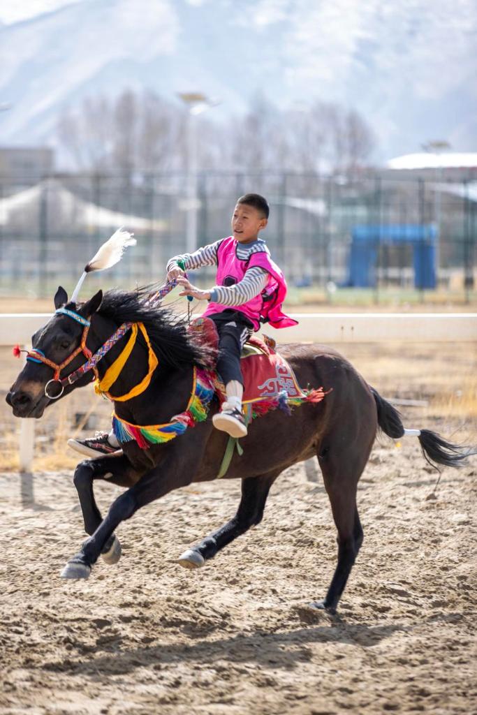 A young contestant competes during a horse race in Lhasa, southwest China's Xizang Autonomous Region, March 2, 2025. (Xinhua/Jiang Fan)