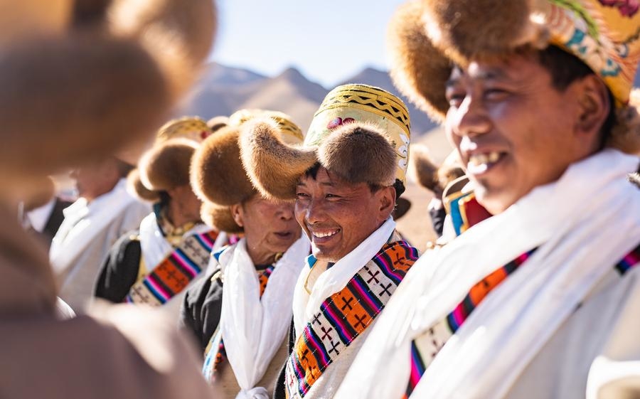 Farmers participate in a ceremony marking the start of spring farming in Codoi Township, Lhunzhub County of Lhasa, southwest China's Xizang Autonomous Region, March 16, 2025. (Xinhua/Tenzin Nyida)