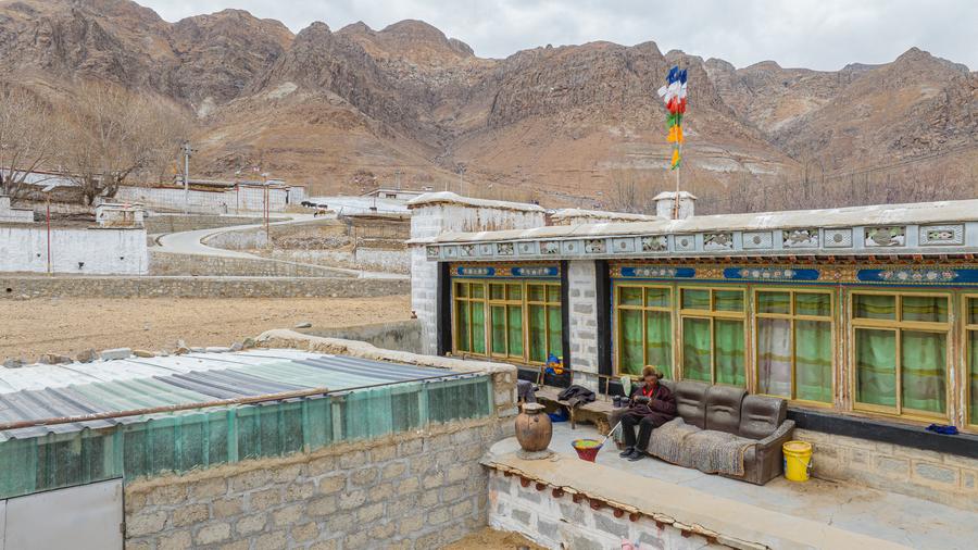 An aerial drone photo shows Sonam Tashi listening to the radio in Chubzang village of Doilungdeqen District in Lhasa, southwest China's Xizang Autonomous Region, March 20, 2025. (Xinhua/Tenzin Nyida)