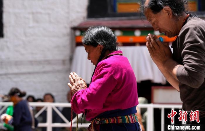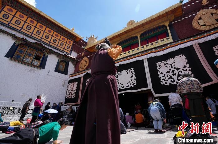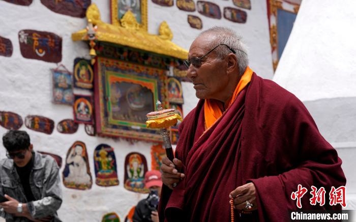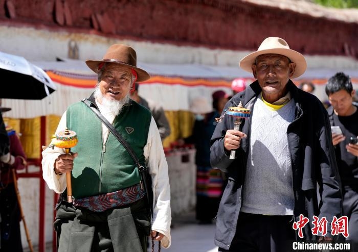 Believers gathered to pray with prayer wheels around the Potala Palace in Lhasa, Xizang, on May 28. This date marks the first day of the fourth month in the Tibetan calendar and signifies the commencement of the holy month of “Saga Dawa,” a traditional religious ceremony.