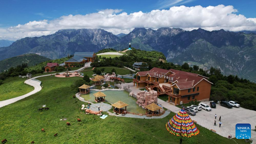 Children play at a scenic spot in Zhouqu County, Gannan Tibetan Autonomous Prefecture, northwest China's Gansu Province, July 12, 2025. (Xinhua/Ma Ning)